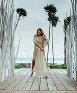 Our kimono dress is made of cotton gauze. Very versatile piece since it can be worn loosely to accompany other garments or tied, turning it into a dress, with a simple line and a simple cut and at the same time elegant. With sleeves and adjustable waist straps.